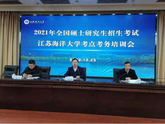 12月23日,宁晓明校长在学校考务培训会上亲自进行部署并提出要求,要求广大考务人员认真学习贯彻落实习近平对研究生教育工作作出重要指示精神,在全力做好疫情防控确保师生员工和考生安全的基础上,要严格遵循科学、公平、安全、规范的原则完成考务工作。前期,许兴友副校长多次主持召开了考务工作协调会,并亲临考场进行安排部署考务工作。在省、市教育考试院的关心和指导下,党委研究生工作部、研究生处在考务工作领导小组的指导下,结合我校实际制定《2021年全国硕士研究生招生考试江苏海洋大学考点考务工作方案》,明确了实施程序和各小组工作职责,并认真做好组织、协调工作;在各学院的支持下,教务处按照相关条件严格选聘监考员、流动监考员等180余人,按照《江苏省2021年全国硕士研究生招生考试考务工作规定实施细则》要求对不同岗位人员先后开展了多轮个性化培训,学习考务工作手册,签订责任书,严格要求、严肃纪律、明确职责、熟悉规程,考务人员经考核合格后方可上岗;宣传部营造了既庄重又和谐的气氛,在校园1号门内设置拱门并悬挂醒目横幅,在专用通道上安插彩旗,在电子大屏制作了与考试相关的精美宣传标语画面;党委办公室(校长办公室)、纪委机关、信息化处、保卫处、后勤管理处等部门密切配合,通力合作,分别动员大量人员投入保障服务,确保考场设施设备正常运转、防疫工作落实到位。