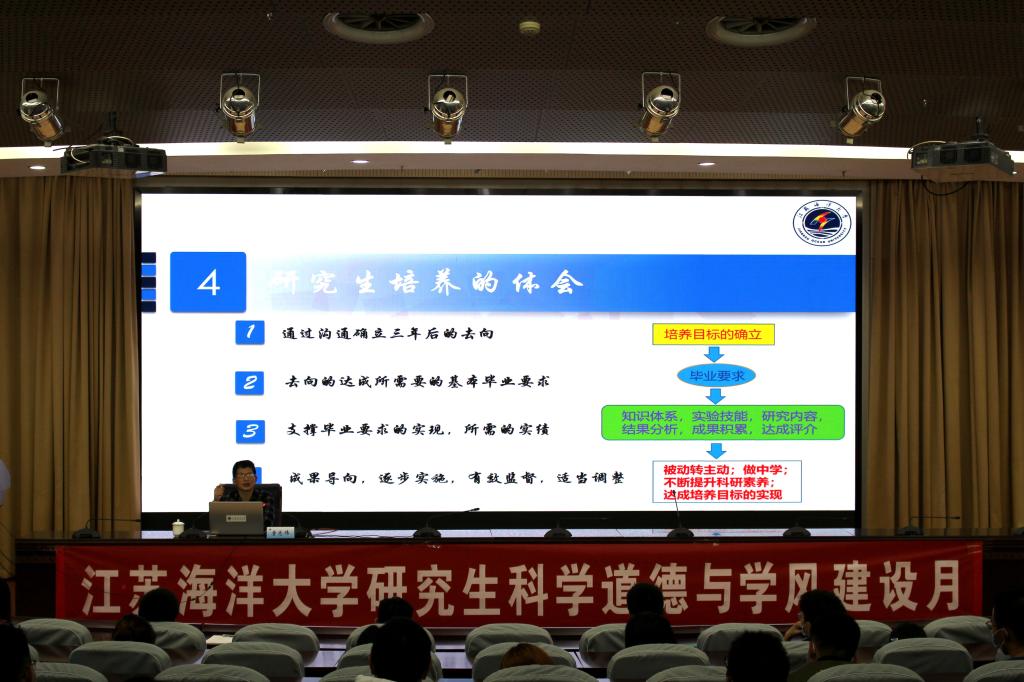 113日下午,江苏海洋大学研究生讲坛第二讲“弘扬科学家精神,恪守学术道德”在会议中心黄海厅举行,原环境与化学工程学院院长童志伟教授向研究生介绍了如何促进“科学研究素养的养成”。本次讲座采用线上线下相结合的形式展开,近200名研究生参加现场活动。讲座由党委研究生工作部部长、研究生院院长卢霞主持。