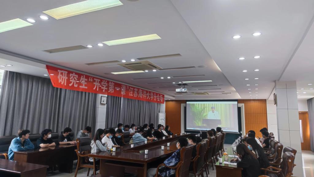 9月27日下午,江苏省教育厅、江苏省科学技术协会联合举办江苏省研究生“开学第一课”活动。我校高度重视“开学第一课”,将其纳入研究生新生入学教育环节,在文渊楼会议室设立江苏海洋大学分会场,各研究生培养学院设置观看点,研究生代表、研究生辅导员及研究生院工作人员共同观看。