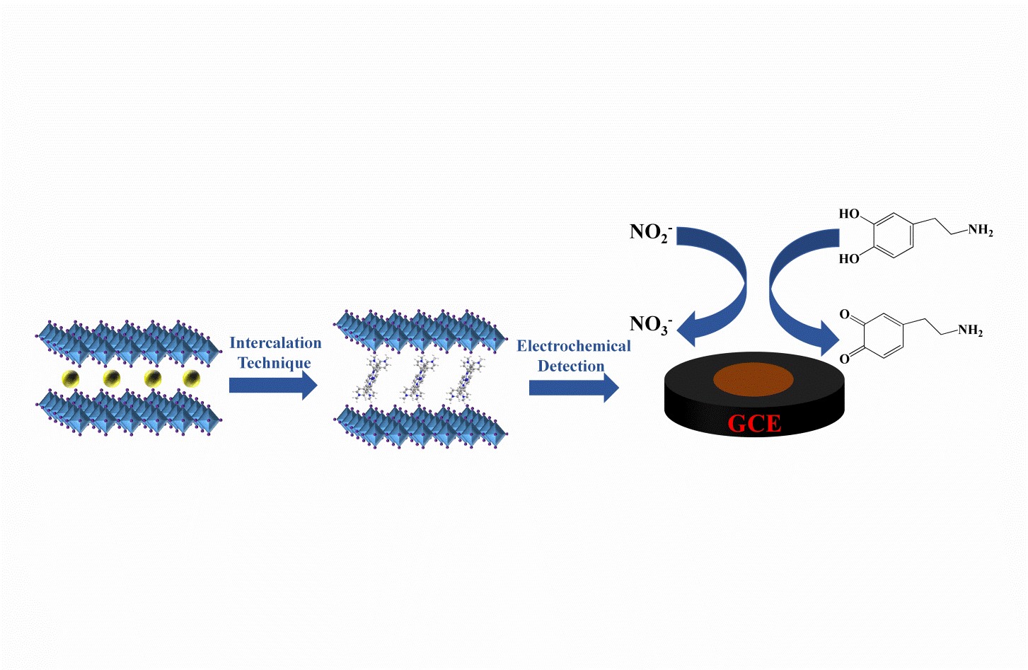 图3:用于检测亚硝酸盐和多巴胺的电化学传感器的构建