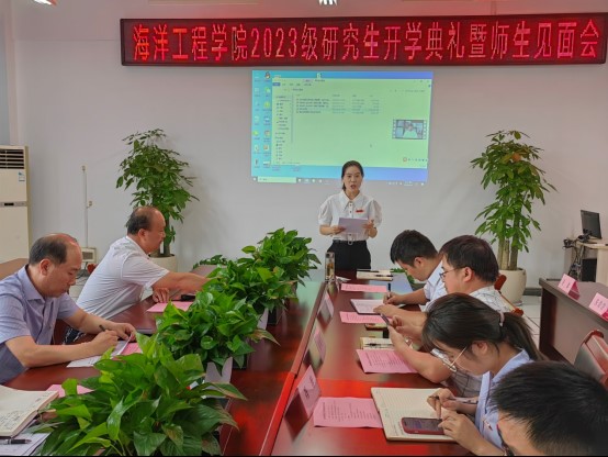 海洋工程学院举办2023级硕士研究生开学典礼暨师生见面会,导师代表郑世燕老师希望新生夯实基础、提升技能、锤炼意志、勇攀高峰、发展爱好和调整心态,做到自信自强、守正创新、踔厉奋发、勇毅前行。2021级硕士研究生陶亚东分享他入学两年以来的一些感悟,结合自身的科研学习经历给新生提出建议。新生代表程佳祺表达了对海洋工程专业的热爱、对学院的感谢和对未来的期望。