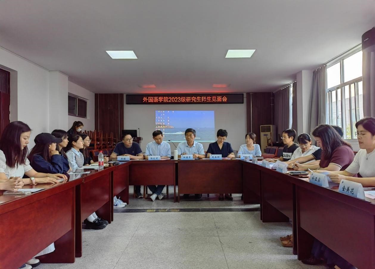 外国语学院召开2023级研究生师生见面会,院长赵晶辉教授详细介绍了学校的发展历程、外国语学院的师资力量、专业设置与教学设施等情况,极大地增强了2023级研究生对专业前景的信心。