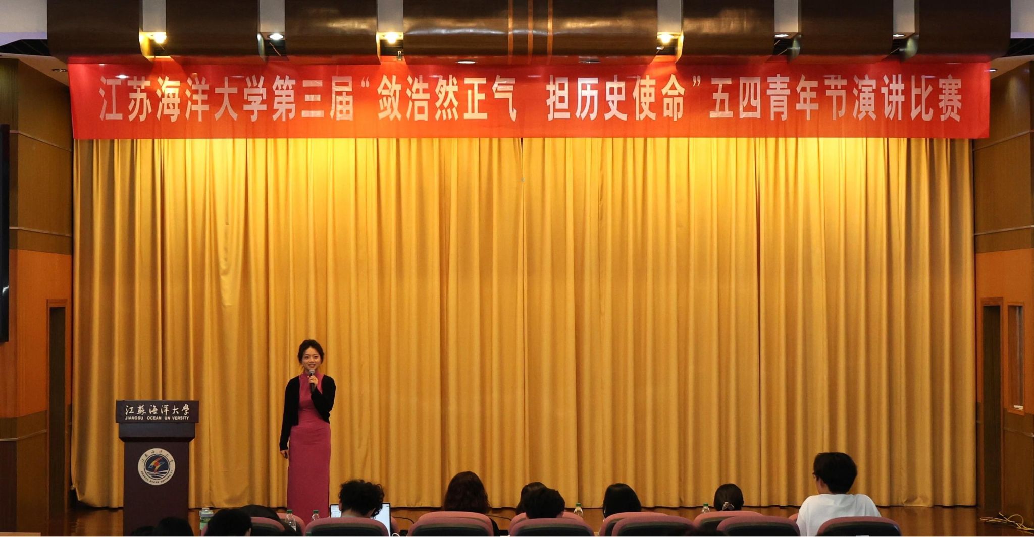 为引导我校青年学子深刻领会五四精神的时代内涵,鼓励他们在民族复兴征程中积极作为、勇挑重担,以青春之姿书写时代华章,为祖国发展贡献力量,5月7日下午,第三届“敛浩然正气,担历史使命”五四青年节演讲比赛决赛在文博楼报告厅举行。活动由党委研究生工作部、共青团江苏海洋大学委员会主办,校研究生会、校学生会承办。部分青年教师、研究生和本科生代表一百余人现场观赛。