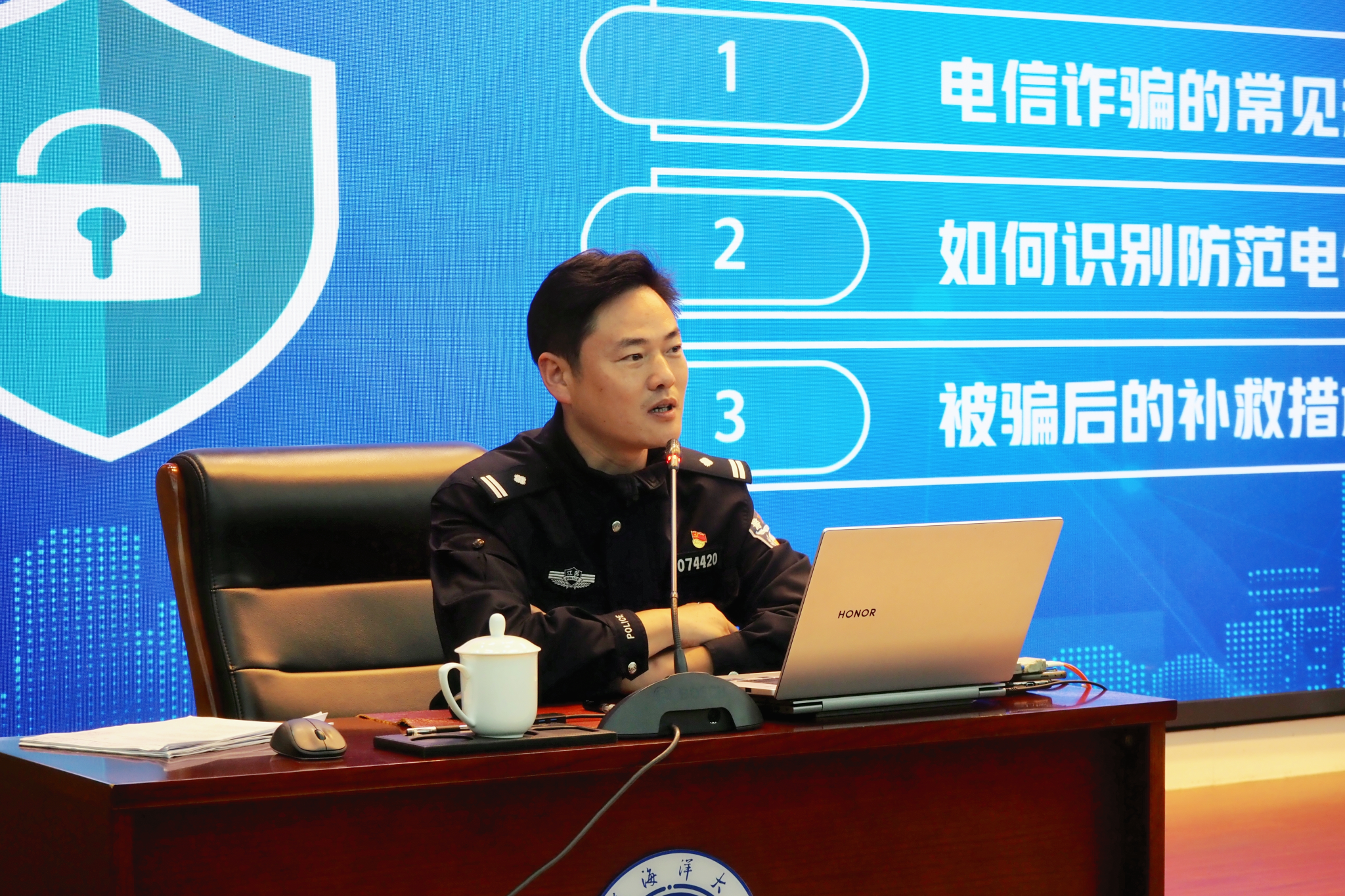 任海洋以“提高防范意识 远离电信诈骗”为主题,结合大学校园典型电信网络诈骗案例,从“电信诈骗的常见手段”“如何识别防范电信诈骗”“被骗后的补救措施”等三个方面,深入讲解当前最新诈骗手段,剖析受害人遭遇诈骗时的心理状态,提醒师生防范技巧与遭遇诈骗后的应对方法,为大家敲响警钟,旨在增强研究生在学习、科研、生活中防范电信网络诈骗的安全意识与应对能力。