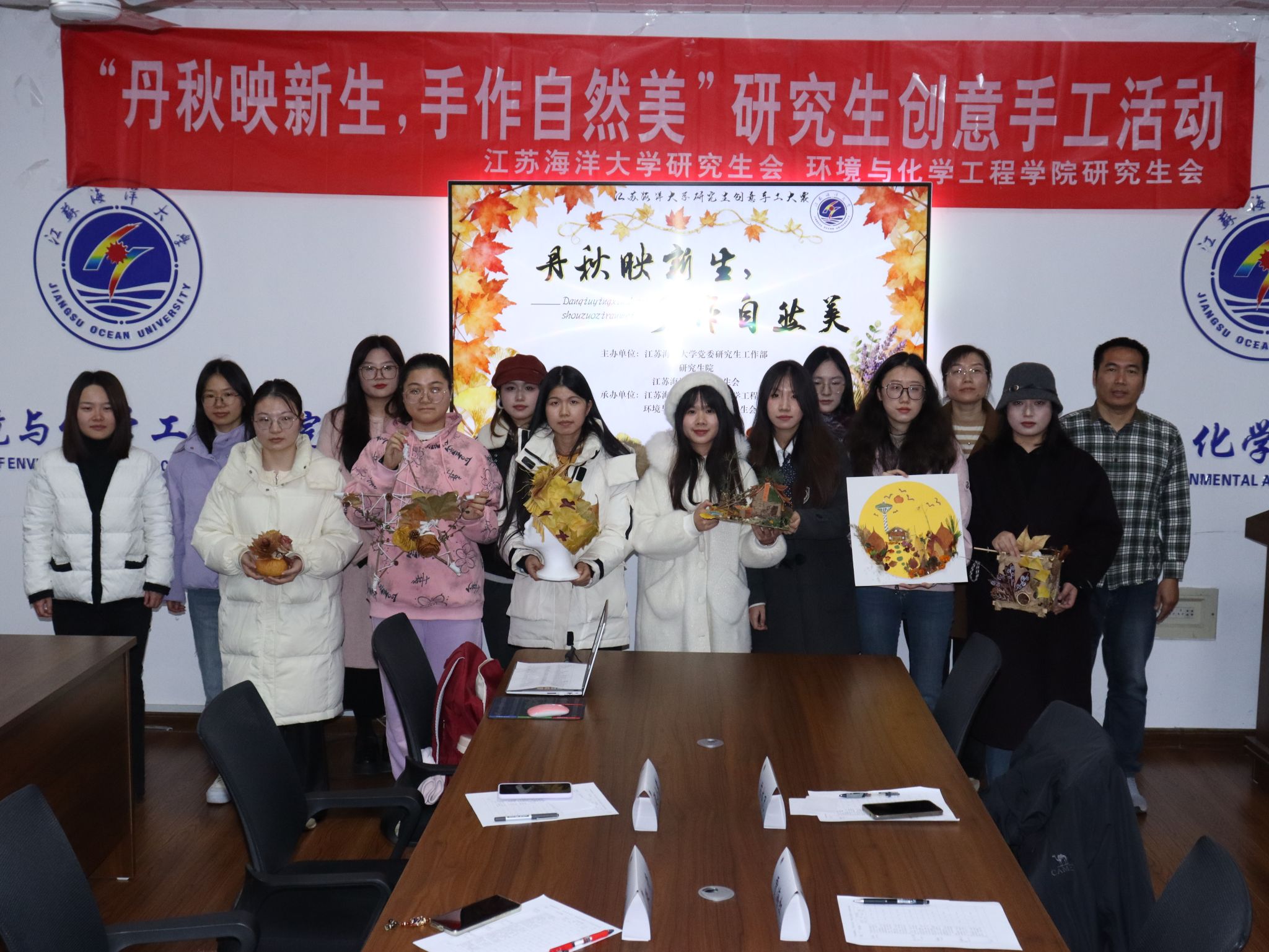 秋风送爽,落叶缤纷。为丰富研究生课余文化生活,提升同学们的创新思维和动手能力,同时增进新老生之间的交流与互动,江苏海洋大学研究生会、环境与化学工程学院研究生会联合举办了"丹秋映新生,手作自然美"研究生创意手工活动。
