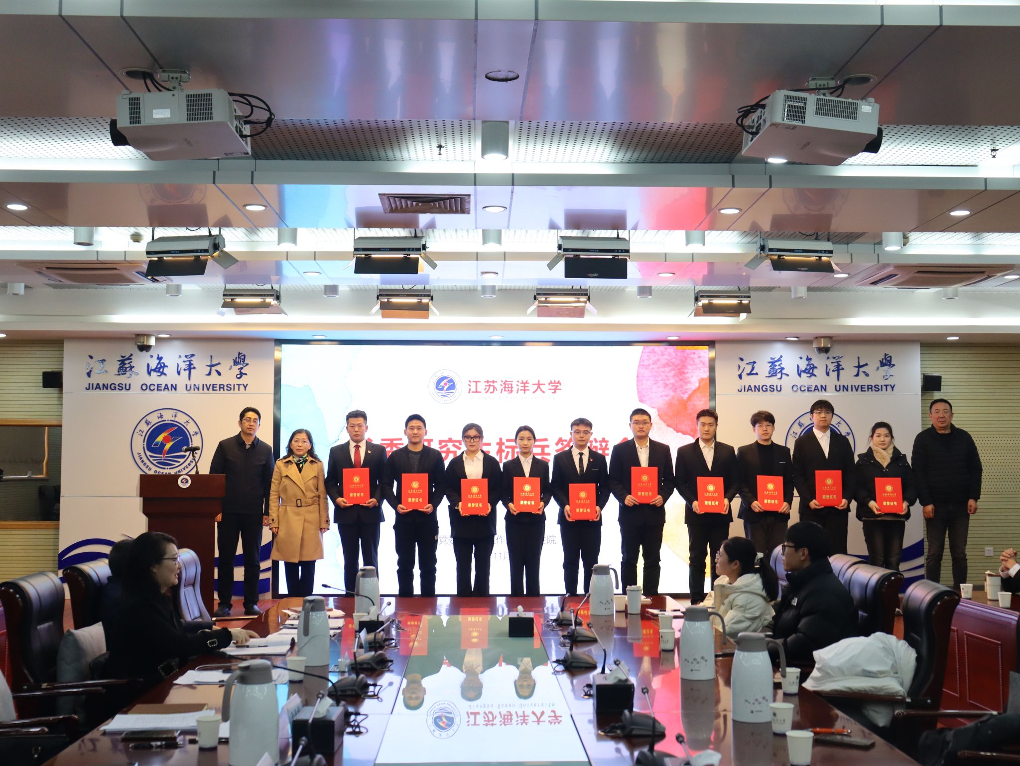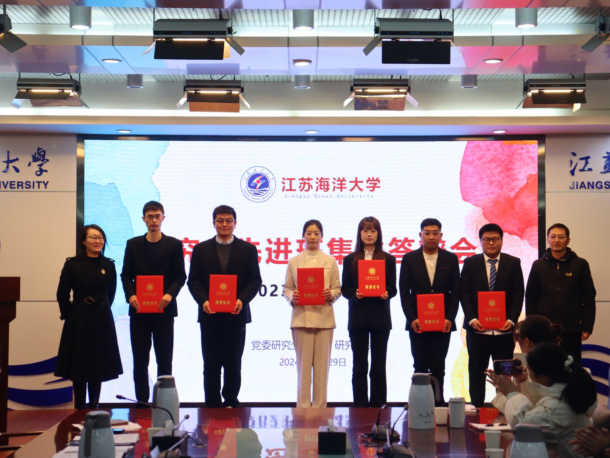 为了切实做好研究生评优工作,充分发挥优秀研究生的榜样力量,展现江海大研究生学子的精神风貌,202411月29日,由党委研究生工作部、研究生院主办的2023-2024学年优秀研究生标兵及研究生先进班集体展示评审会在学校会议中心东海厅举行。校学术期刊社社长于雪梅,科学技术处副处长房耀维、招生与就业处副处长骆海宏大学科技园管委会副主任易丹丽党委宣传部副部长徐凯等5人担任评委。15名优秀研究生标兵候选人10名研究生先进班集体候选班级代表以及40余名研究生代表共70余人参加活动