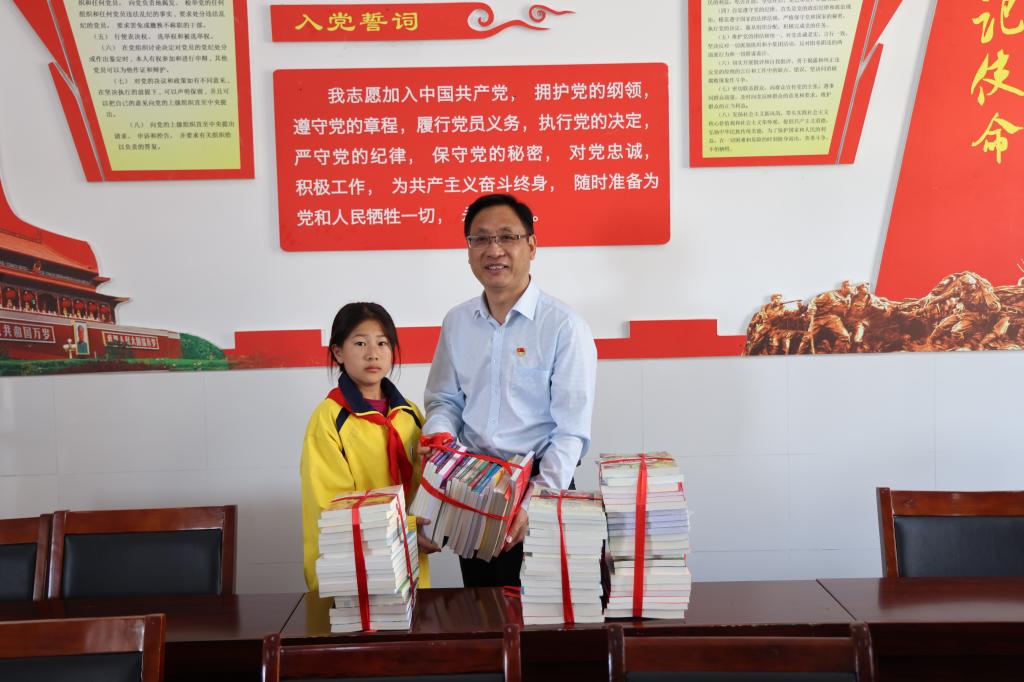 机关第九党支部书记、党委研究生工作部部长、研究生院院长陈书法向同学们捐赠了200多本爱心图书,并鼓励同学们好好学习,积极向上,不畏困难,立志成才,努力成长为合格的社会主义事业建设者和接班人。